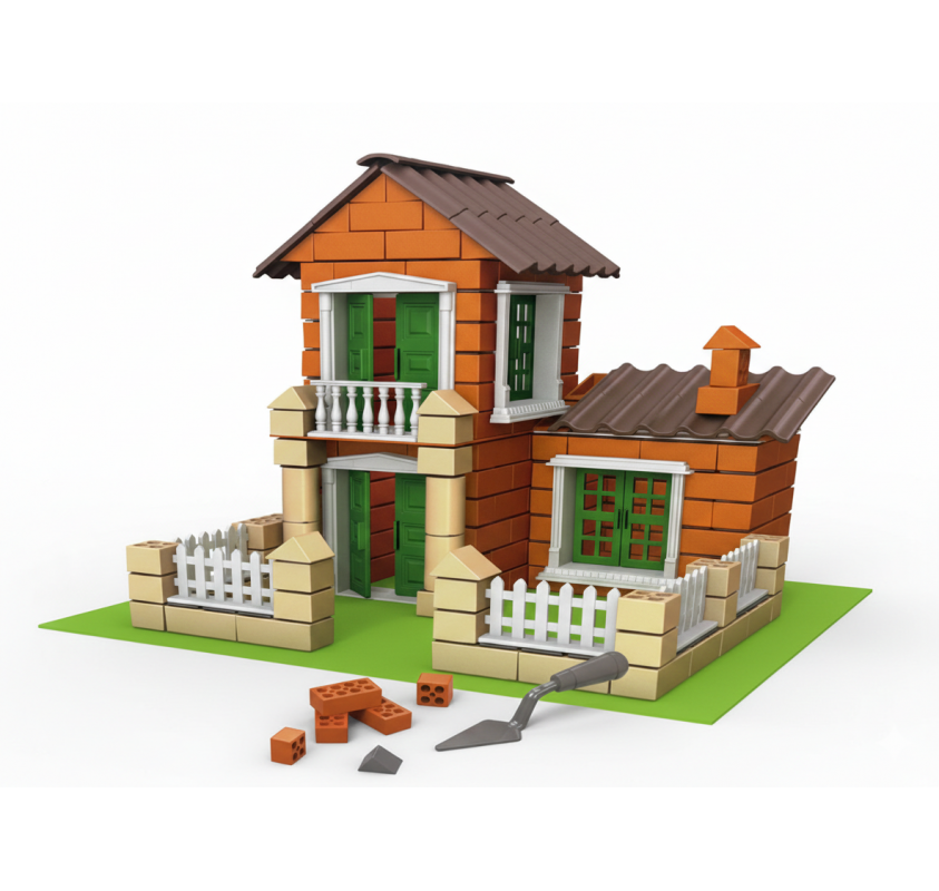 Offrez-leur l'expérience unique de construire une véritable villa avec de mini briques et du mortier naturel.